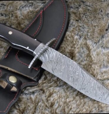 CUSTOM HANDMADE FORGED DAMASCUS STEEL HUNTING BOWIE FIX BLADE KNIFE + SHEATH